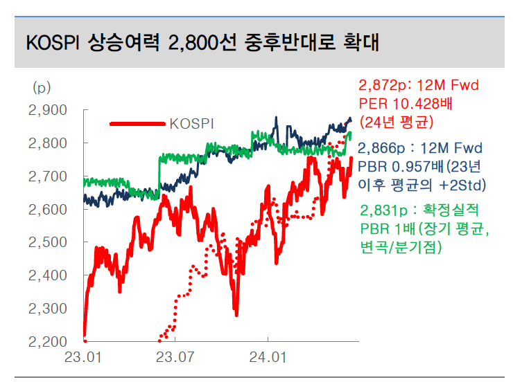 - 미국과 중국의 긍정적 영향: 미국의 금리 인하 기대와 중국의 경제 회복이 맞물리면서, KOSPI 상승 여력이 2,800선 중후반까지 확대될 것으로 예상됩니다. 미국의 물가 둔화와 중국의 경기 회복은 글로벌 경제에 긍정적인 영향을 미치며, 이는 한국 증시에도 긍정적으로 작용할 것입니다.