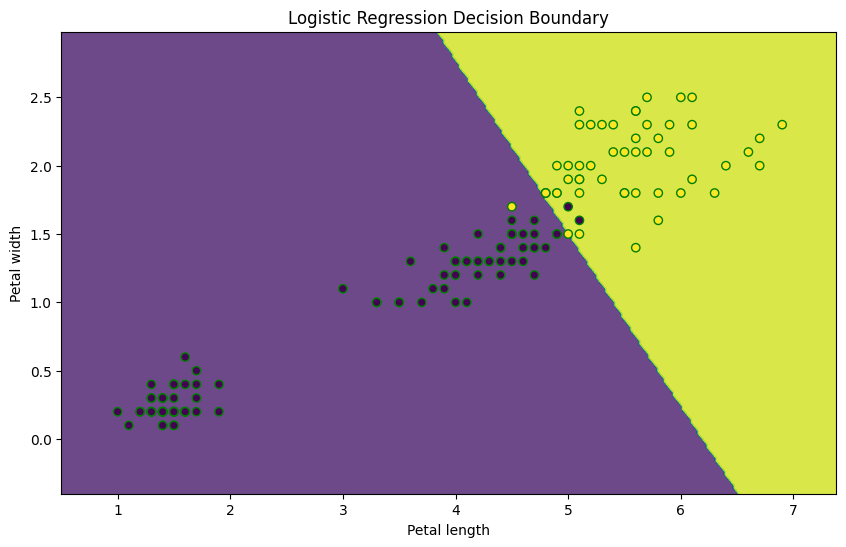 이 코드는 Iris 데이터셋을 로드하고, Iris-Virginica 종을 분류하기 위한 이진 로지스틱 회귀 모델을 구성, 학습, 평가하는 과정을 단순화하여 보여줍니다. 실제 환경에서는 데이터 전처리 단계에서 더 많은 작업이 필요할 수 있으며, 모델의 성능을 향상시키기 위해 하이퍼파라미터 튜닝이 필요할 수 있습니다.